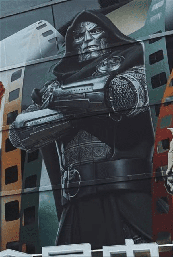 Έχουν κυκλοφορήσει προωθητικά σκίτσα και βίντεο που προσφέρουν την πρώτη ματιά στον Robert Downey Jr. ως Doctor Doom στην ταινία Avengers: Doomsday. Οι εικόνες φαίνεται να προέρχονται από επίσκεψη στα γυρίσματα στο Λονδίνο, δείχνοντας την εμφάνιση του Doom με την πανοπλία του, δίπλα σε μια φιγούρα συλλεκτική που εκτίθεται.